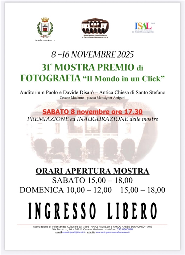 Il premio di fotografia "IL MONDO IN UN CLICK" nasce nel 1992 e da allora quasi ogni anno é stato presente a Palazzo Arese Borromeo I partecipanti crescono col passare degli anni. Nel 2018 insiene a Poste Italiane é stato ideato un logo per l'annullo filatelico per celebrare i 25 anni di attivitá.